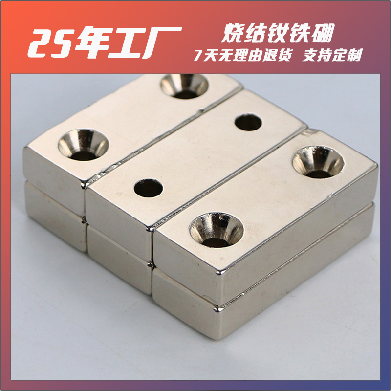 工厂批量订购强磁钕铁硼磁石置特架刀架打捞吸铁石双沉孔方形磁铁
